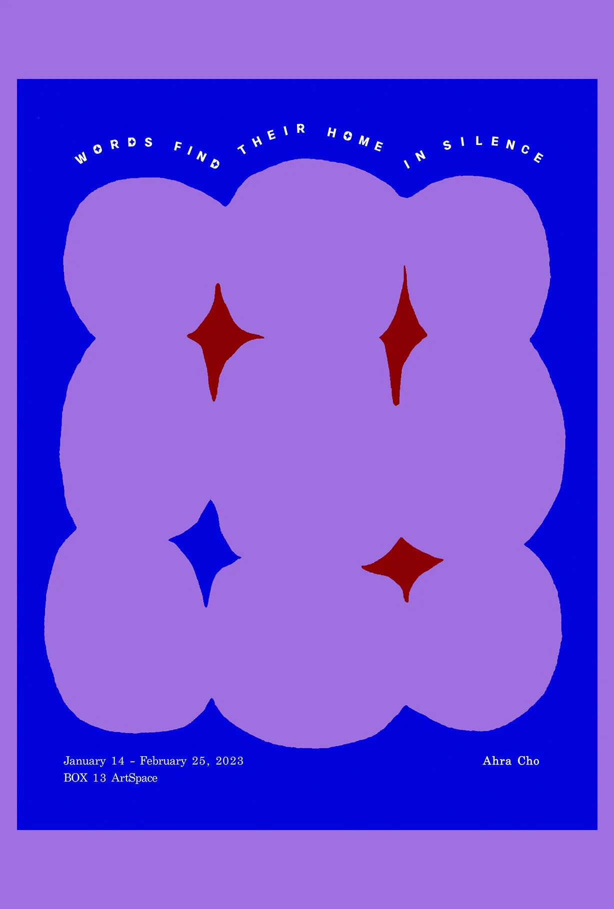 With Words Find Their Home in Silence, Ahra Cho brings to light the ephemeral impressions of her world through multiple modes of communication. The installation brings to the gallery fields of color, form, and texture dispersed across media, including painted works, poetry, and ceramic pieces. This series of material exchanges acts as an entry point for the viewer to engage with Cho’s language of ambiguity.